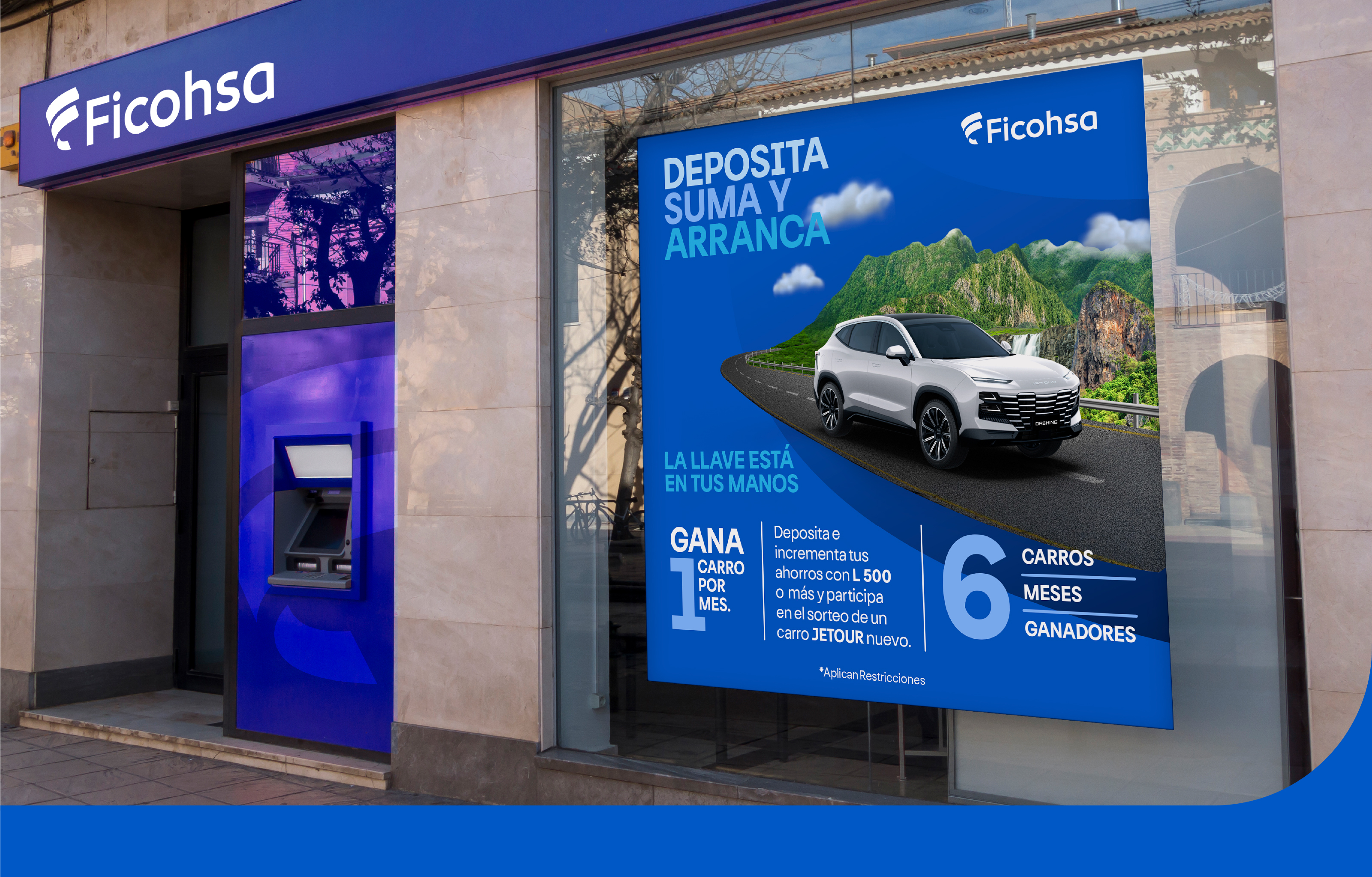 We developed the visual identity and branding system for a promotional campaign by Ficohsa, centered around a car giveaway. The campaign featured the raffle of six cars, one per month, and was open to all customers who deposited a qualifying amount of money with the bank. The identity was designed to be dynamic, trustworthy, and engaging, supporting the campaign across multiple touchpoints and reinforcing the bank’s brand presence throughout the promotion.